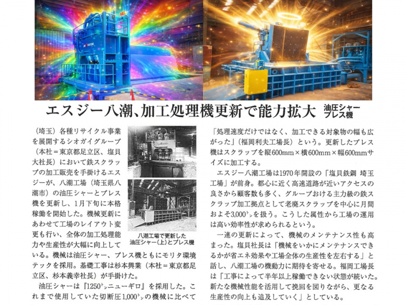 関東エリアを中心に金属スクラップ加工業および産業廃棄物中間処理業を展開するシオ